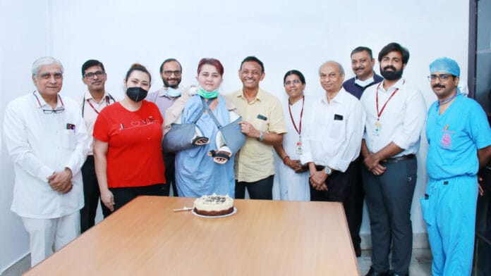 Il s’agit de la douzième transplantation de main menée à bien à l’hôpital Amrita. Le Dr Prem Nair, directeur médical du groupe des hôpitaux Amrita, le Dr Pratapan Nair, administrateur médical, le Dr Subramania Iyer, chef du centre de chirurgie plastique et reconstructive, le Dr Jimmy Mathew, le Dr Anil Mathew et Brahmacharini Rehana ont fêté ce moment lors d’une réception organisée à l’hôpital.