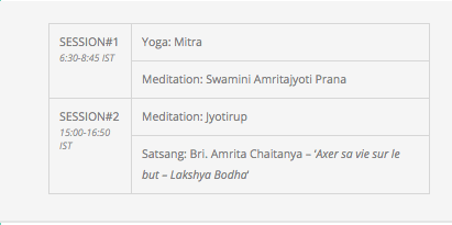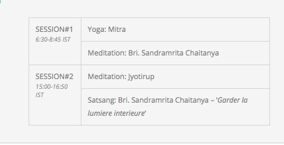 Les horaires sont calés sur les horaires indiens : vous pouvez suivre les sessions en direct ou à l’heure qui convient.